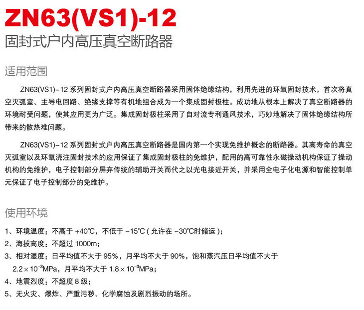 ZN63(VS1)-12固封式戶內高壓真空斷路器