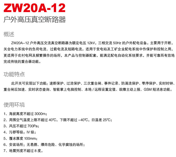 當前位置:主頁 > 產品展示 > 戶外真空斷路器 > ZW20A戶外高壓真空斷路器